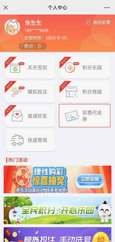 成功获得代金券的用户,可在服务号菜单栏-【个人中心】-【个人中心】-【彩票代金券】中查看代金券明细。