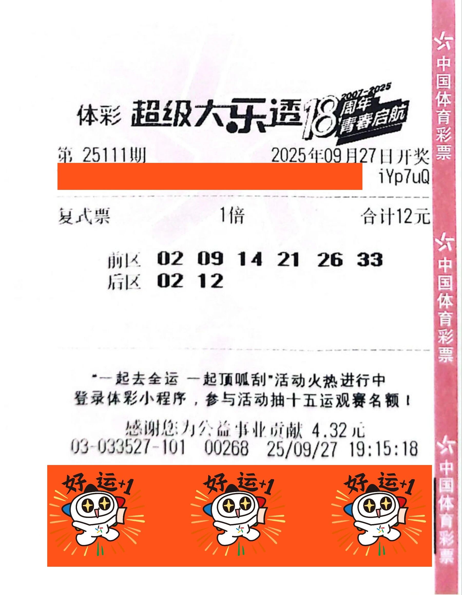 中奖票面