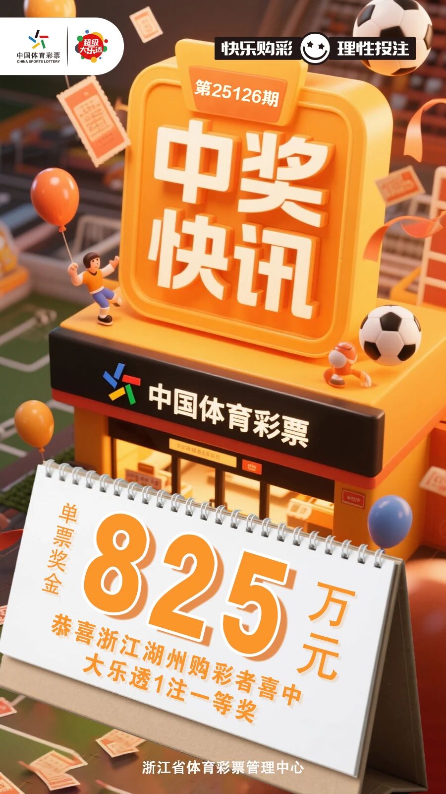本期我省湖州购彩者喜中1注大乐透一等奖,单票奖金825万元,由于未进行追加投注,憾失追加奖金。