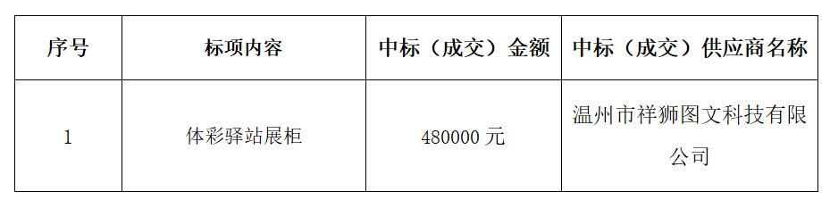 关于温州市体育彩票管理中心体彩驿站展柜项目中标(成交)结果公告