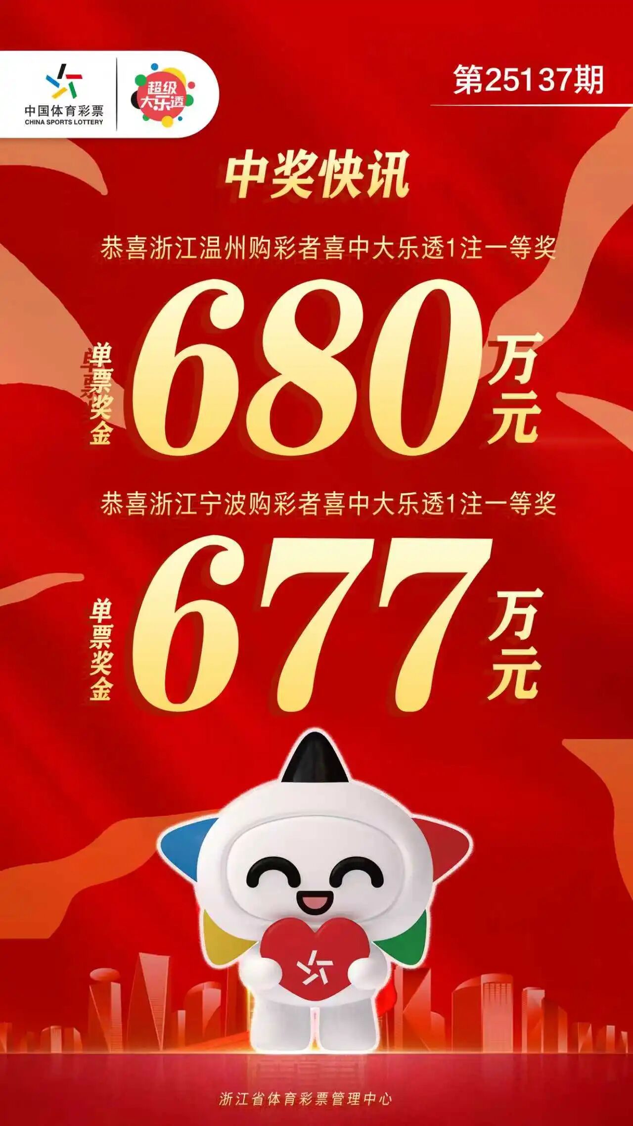 双喜临门!我省宁波、温州喜中2注大乐透一等奖