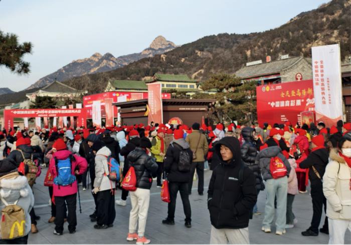 “国泰民安启新程”。在位于山东泰安泰山风景名胜区的北方主会场,国家体育总局群众体育司副司长朱毅,国家体育总局登山运动管理中心副主任、党委副书记常建东,山东省体育局党组成员、省体育总会专职常务副主席李敬生,泰安市委常委、市政府副市长刘峰梅等领导和嘉宾与近2万名登山爱好者从红门广场分时段出发,以“登泰山而小天下”的豪情,沿着经典登山线路经万仙楼、中天门、南天门等景点抵达终点太平顶,并在沿途设置的“身体健康”“家庭幸福”“马到成功”“国泰民安”等主题打卡点拍照打卡,祈愿“新年新气象,新年开好局”。