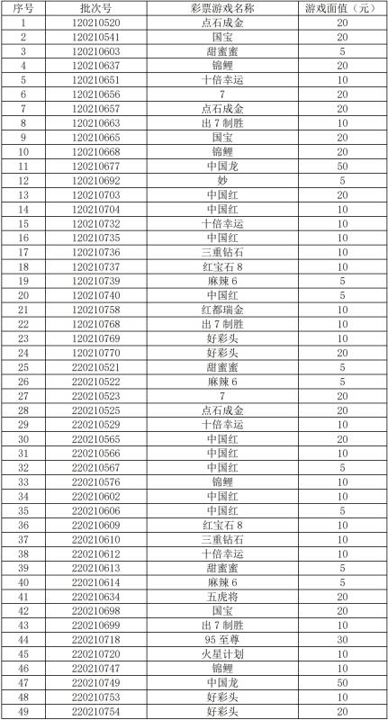 本次相关的即开型体育彩票内容如下表: