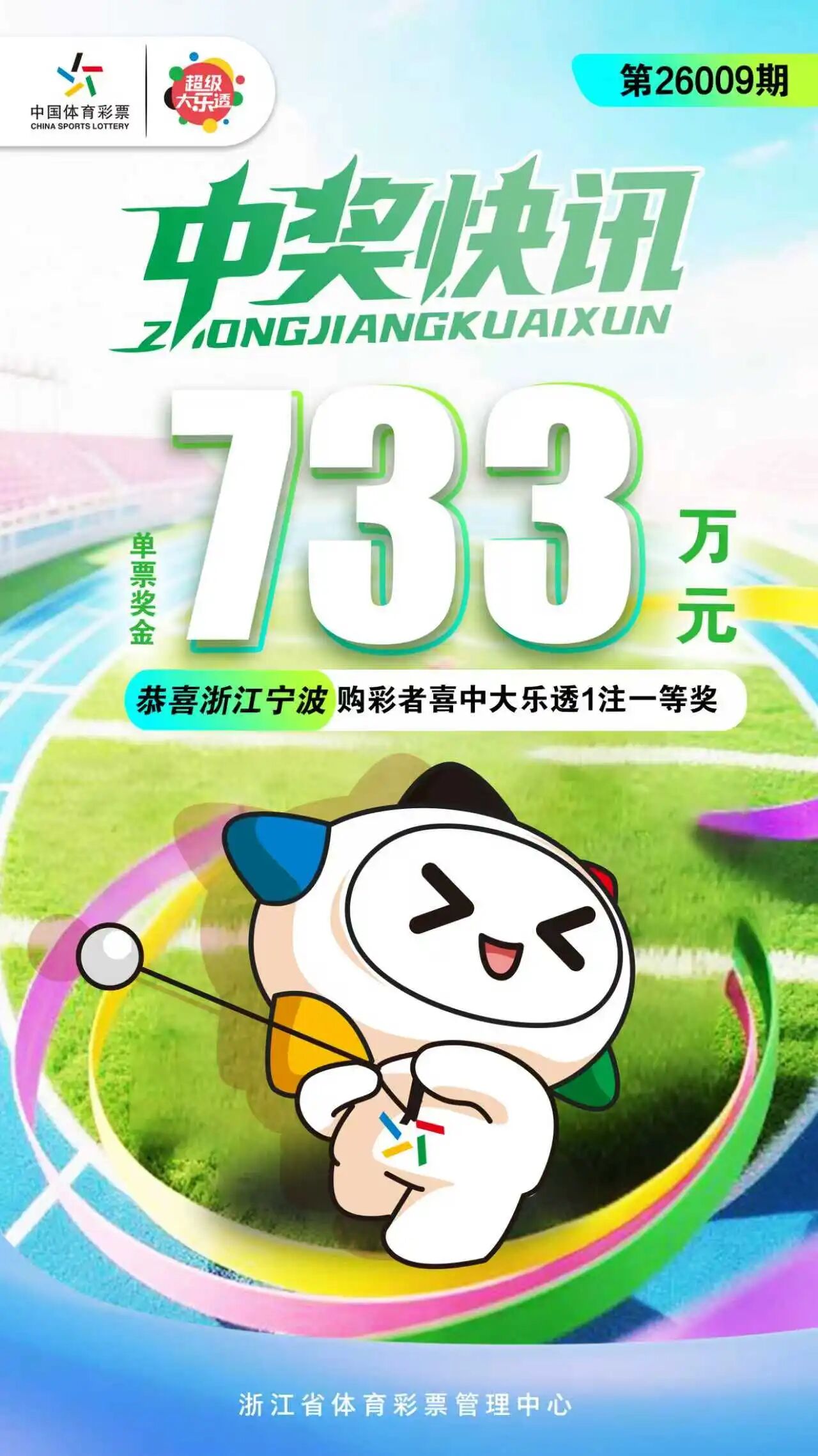 本期我省宁波中出1注一等奖,单票奖金733万元,没有追加投注,错失追加奖金。