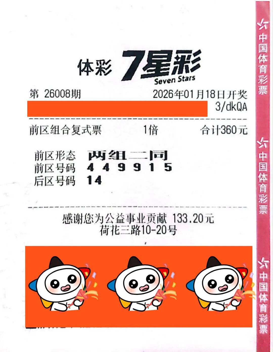 1月18日,体彩7星彩第26008期开奖,当期全国中出2注一等奖,单注奖金500万元。我省衢州地区喜中1注一等奖,单注奖金500万元。
