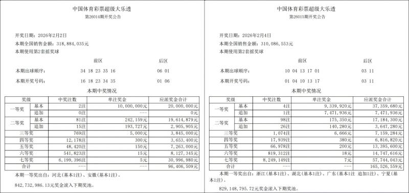近期,中国体育彩票超级大乐透迎来规则调整。自第26014期(2月2日晚开奖)大乐透新规则实施以来,已开奖两期,其亮点与优势正逐步显现,为广大购彩者带来更实惠、更快乐的中奖体验。让我们来看看这两期的开奖情况。