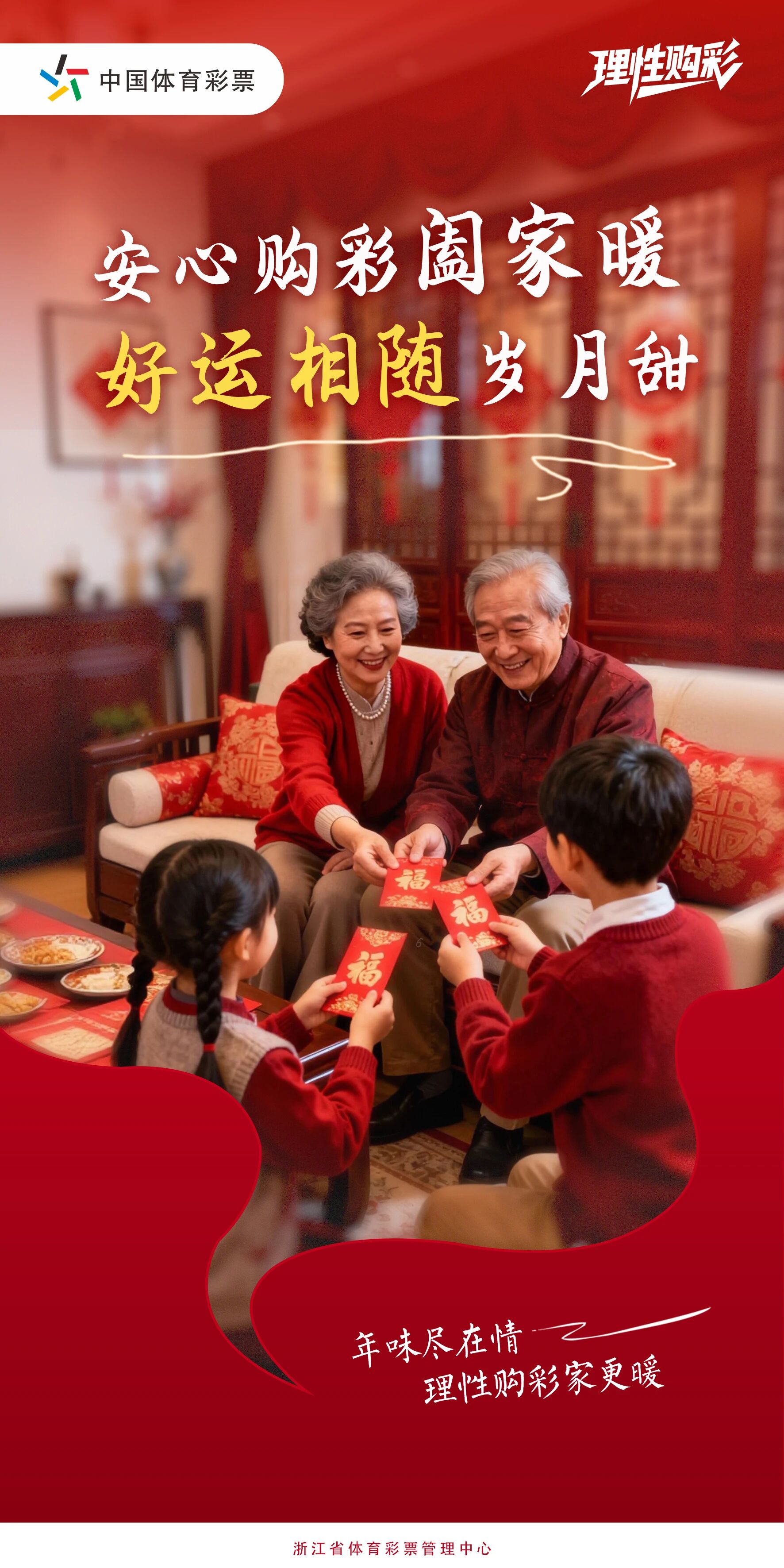 过去的一年,你已经做得很好了,不必事事圆满,团圆即是心安。春节可以卸下心防,享受平淡的幸福,好好和自己相处。如果购彩是你过年的小消遣,记得量力而行,图个喜庆就好,不必为了求一个好彩头勉强自己。愿你在团圆的时光里感受到治愈,在自我认可中体会到心安,在理性购彩中收获“小确幸”。