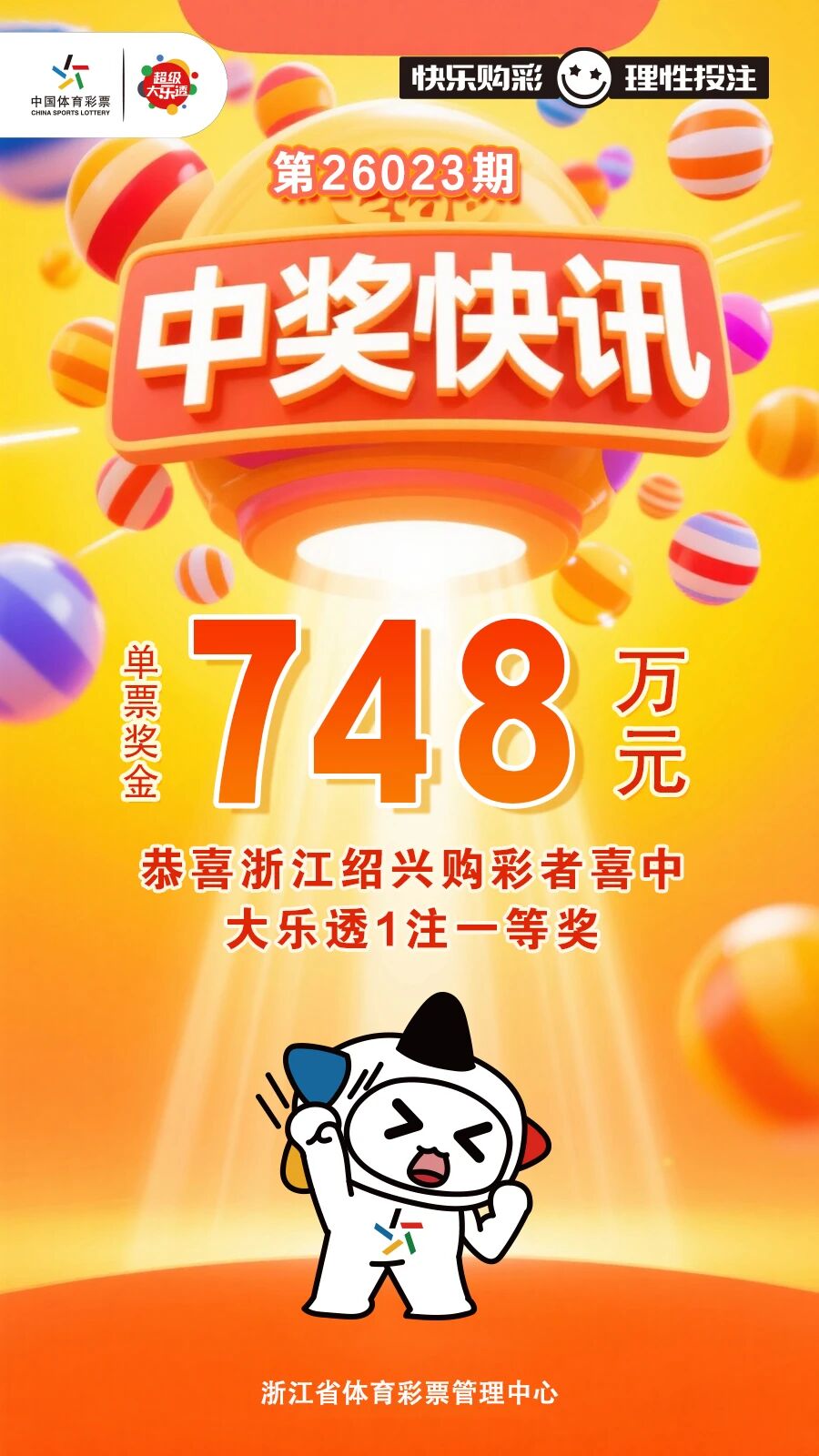 【开奖公告】春风送惊喜!我省绍兴喜中1注大乐透一等奖