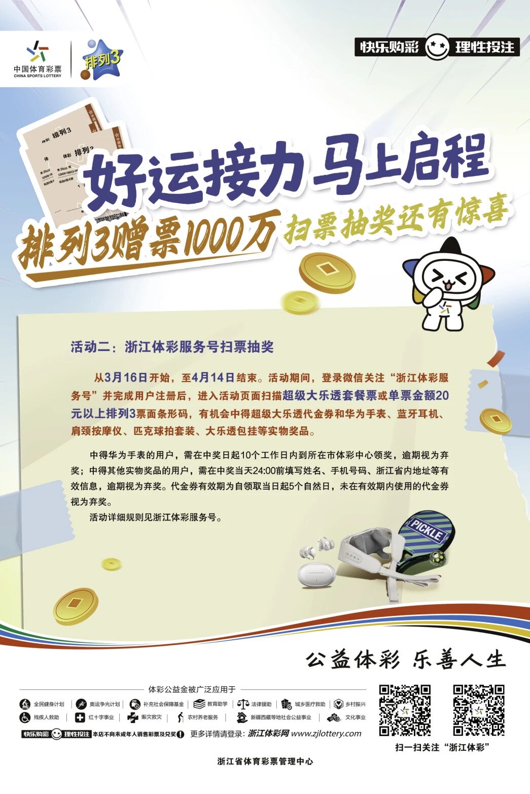 【惊喜赠票】迎接属于你的春日好运!“排列3”1000万惊喜赠票活动火热开启