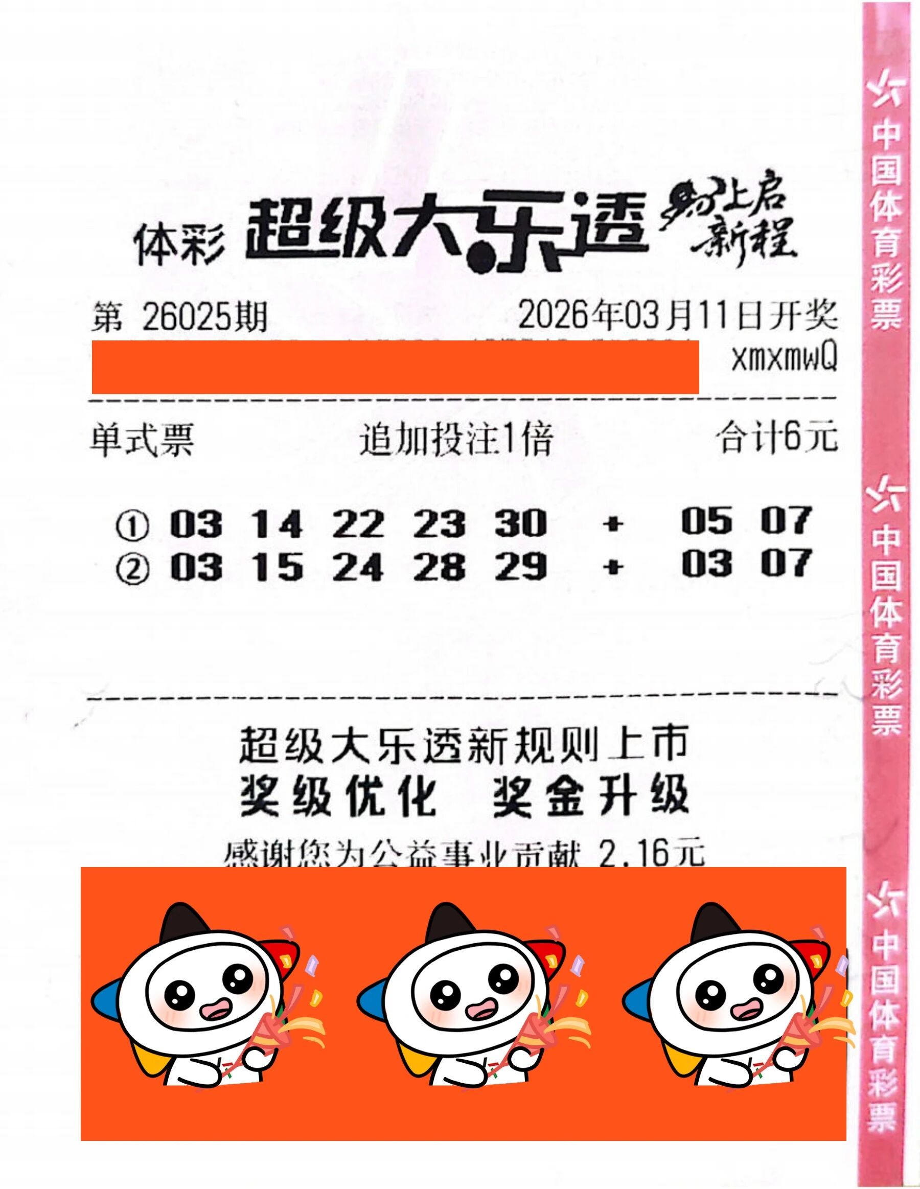 中奖票面