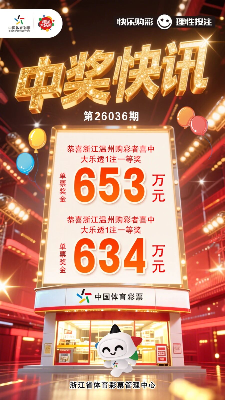 春日好运 双喜临门!温州喜中2注大乐透一等奖